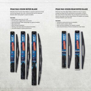 The PEAK® Hybrid Wiper Blade combines the stability of a traditional framed blade with the sleek design of a beam blade. The PEAK® Hybrid Wiper Blade features a heavy-duty aerodynamic design to ensure premium performance in any type of weather. Product features include: